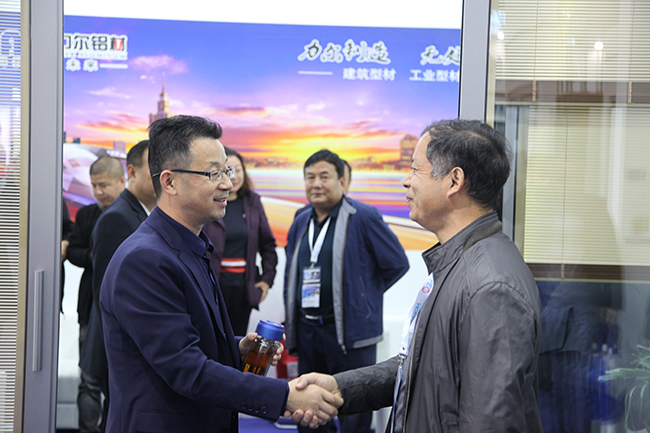 展會(huì)上,中國(guó)建材凱盛集團(tuán)高級(jí)專務(wù)茆令文親臨現(xiàn)場(chǎng),在力爾鋁業(yè)總經(jīng)理陳先武、力爾鋁業(yè)常務(wù)副總楊擁彬的陪同下,參觀了展臺(tái),對(duì)展品贊不絕口,并鼓勵(lì)力爾鋁業(yè)再接再厲,勇往直前!