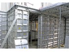 鋁合金建筑模板系統(tǒng)所有部位都采用鋁合金模板組裝而成,系統(tǒng)組裝完成后,形成一個(gè)整體框架,穩(wěn)定性很好;合理的布置承重支柱,承載力可達(dá)到每平方米30KN。